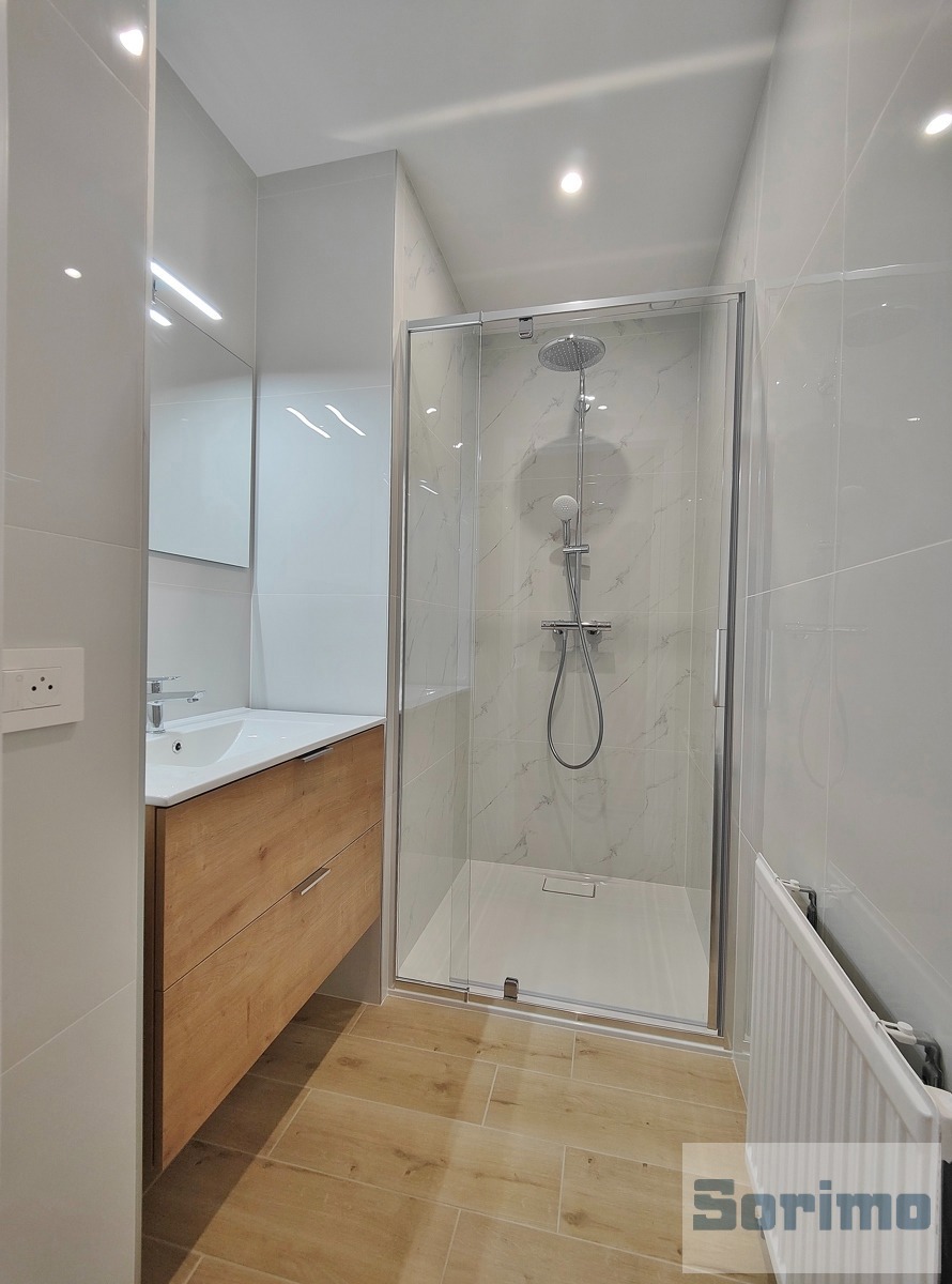 • Salle de douche de +/- 2,5 m² (douche et meuble lavabo) (carrelage)