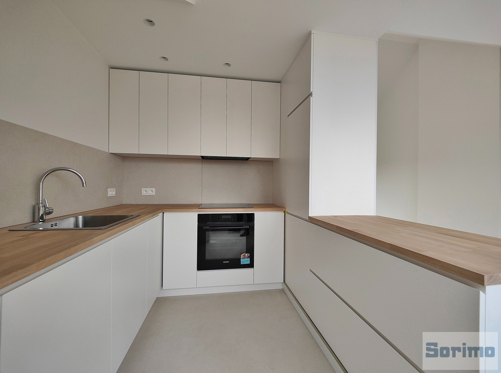 - Cuisine super équipée de +/- 9 m² (taques à induction, hotte, four, frigo, congélateur et lave-vaisselle) (carrelage)