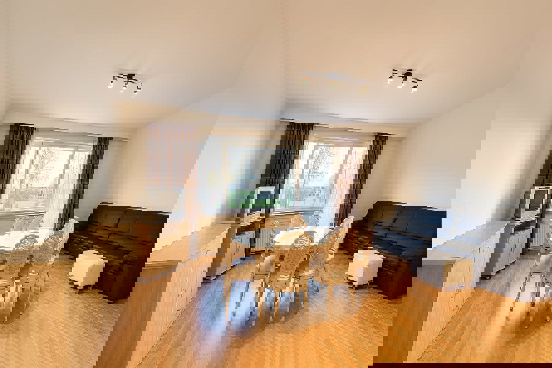- Ingerichte keuken van +/- 7 m² (keramische kookplaat, afzuigkap, oven en vaatwasser)