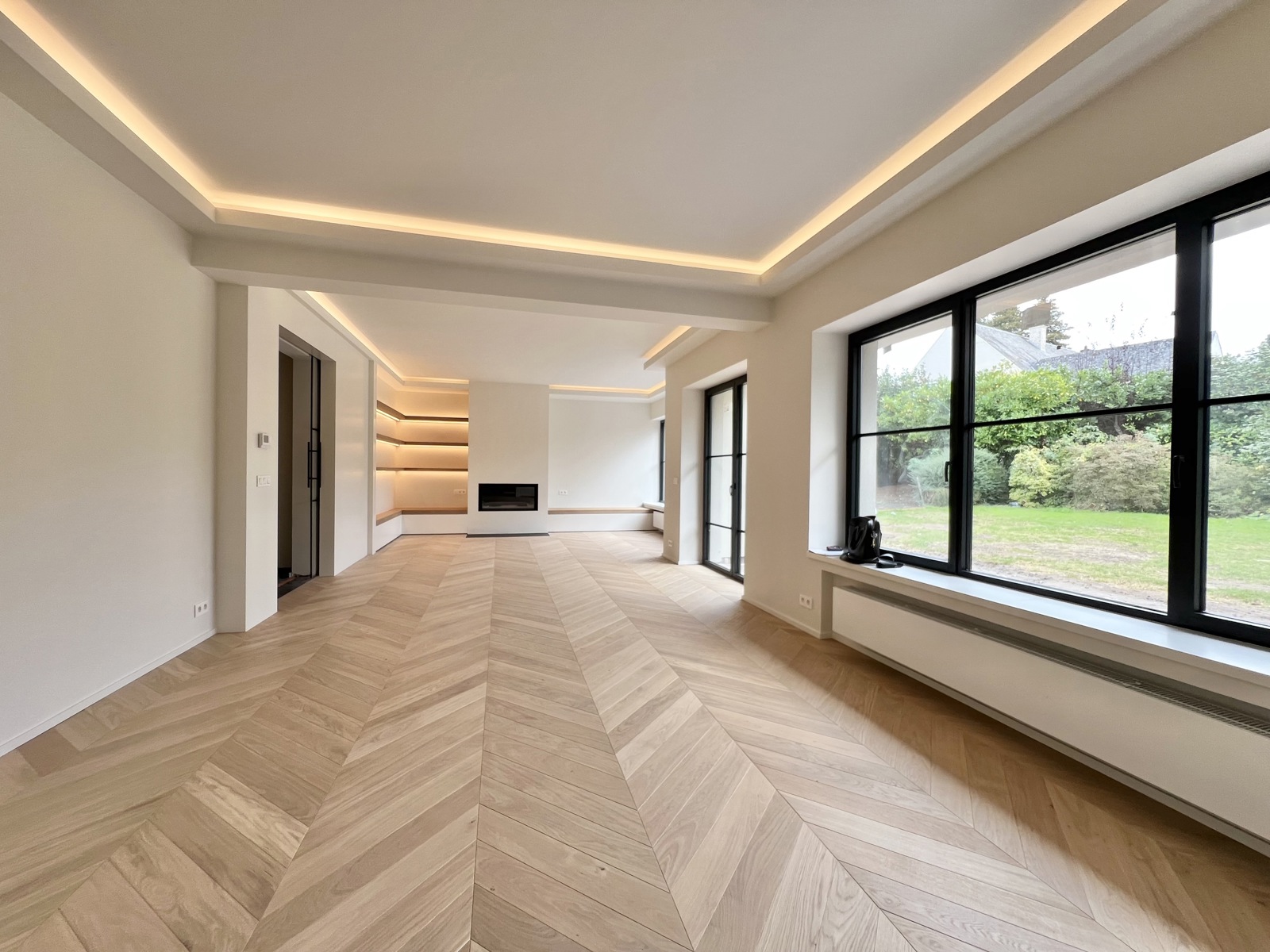 - Woonkamer van +/- 50 m² met open haard (parketvloer)